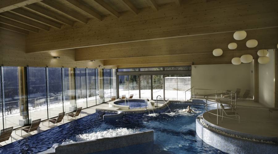 - solarium panoramico, palestra, piscina di acqua sorgiva e thermarium con percorsi idromassaggianti, sauna, bagni di vapore e bagni di neve, massaggi e trattamenti rigeneranti a base di prodotti della natura;